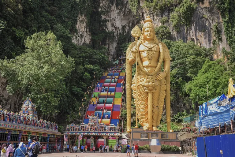 Batu Caves | One of Malaysia’s most popular and culturally significant landmarks. This sacred Hindu site is renowned for its majestic golden statue of Lord Murugan and the vibrant, rainbow-colored staircase that leads up to the Temple Cave. Climb the 272 steps for sweeping views, and take time to explore the impressive limestone caves, ancient shrines, and deep-rooted spiritual heritage that make Batu Caves an unforgettable cultural experience.